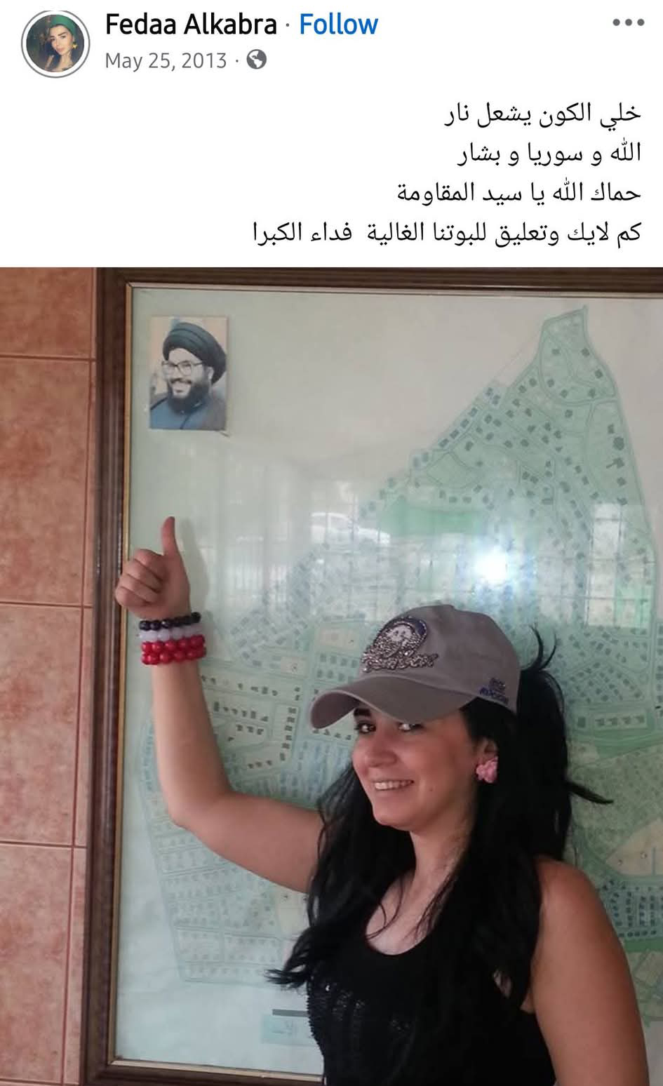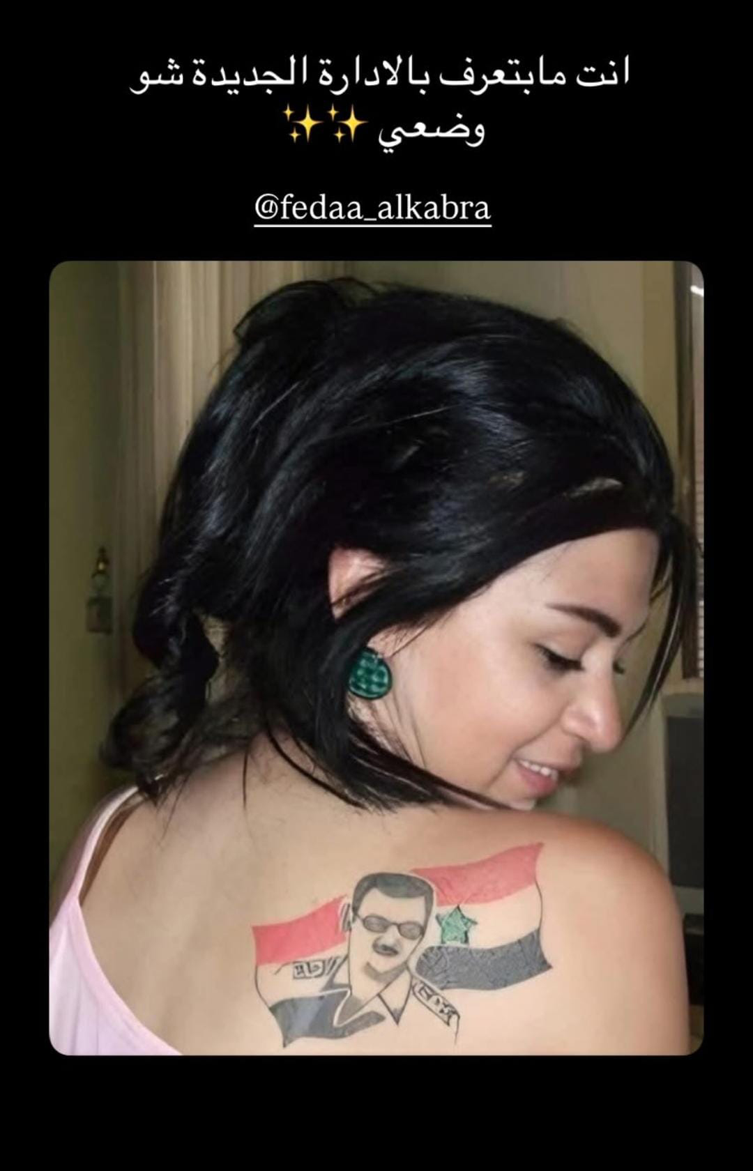 استهزأت بالمعتقلين وأوجاعهم، ونكرت وجود تعذيب في المعتقلات التابعة لنظام الأسد البائد وقالت بأنه تمثيل! قامت سابقاً بنشر تحـ ـريض عبر خاصية الستوري على حسابها على انستغرام تدعو فيه لإبـ ـادة أهل حماة!!! كما نشرت على حسابها على فيسبوك تدعو لتطـ ـهير الغوطة الشرقية ووصفت أهل الغوطة بالإرهـ ـابيين عبر حملة جاري التحرير التي قام بها النظام البائد والتي أدت لتهجير أهالي الغوطة الشرقية وارتكاب عشرات المـ ـجازر خلال شهر واحد فقط في عام 2018، سابقاً قامت بنشر صورة لجندي من النظام البائد يقوم بالدعس على علم الثورة السورية وعلّقت على الصورة بجملة: وانتصر الجيش العربي السوري بانتصار البشار، الغوطة محررة من الارهـ ـاب وذلك (بعد تهجير أهالي الغوطة الشرقية)، وبعد سقوط النظام البائد أرسلت تسجيل صوتي لأحد الأحرار تهدده فيه وتمارس عليه التشبيح!!