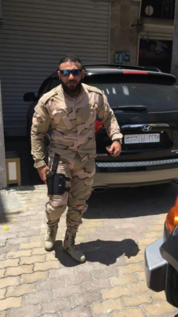 من حي الخضر بمدينة حمص، كان في بداية الثورة السورية يعمل في مشاريع اللحام في الأردن، بعد فترة تم طرده من الأردن وعاد إلى سوريا وانتسب إلى ميليشيا لواء القدس، كما شارك في العديد من المعارك بجانب المخابرات الجوية في العديد من المناطق الثائرة، متواجد حالياً في الإمارات