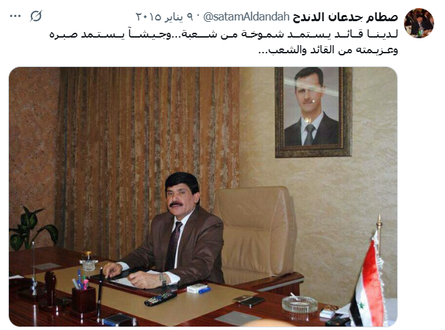 من قرية الشيبانية في القامشلي بمحافظة الحسكة، سفير سوريا في العراق منذ عام 2012 حتى الآن، كان مقرباً من قيادات الحرس الثوري الإيراني، وكان يلتقي بأغلب قادة الميليشيات التابعة لإيران في العراق، وحسب شهود فإن السفارة السورية في بغداد تحوّلت لمفرزة أمنية في فترة وجوده في ظل وجود بشار الأسد، كما كان له يد بتسهيل دخول الميليشيات العراقية للقتال بجانب نظام الأسد الهارب، كما أن ابنه المحامي “باسل صطام الدندح” الذي يمتلك مكتباً للمحاماة في شارع العابد بدمشق، فقد كان يشتم الثوار ويهدد أهالي منطقته ويقول لهم: أنتم يا من عارضتم النظام لن تدخلوا سوريا مهما حلمتم بذلك.